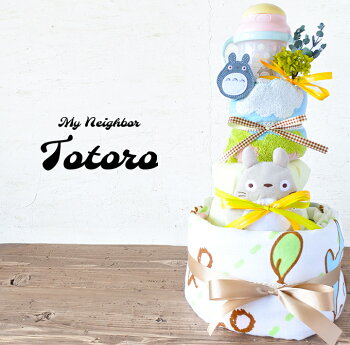 【平日16時まで即日発送】送料無料!名入無料!おむつケーキ ラトル付 ストローマグ 身長計バスタオル スタジオジブリ となりのトトロ ベビーシャワー | 出産祝い 赤ちゃん 出産 ギフトお祝い 男の子 女の子 オムツケーキ ダイパーケーキ 贈り物 かわいい ナチュラル 誕生日